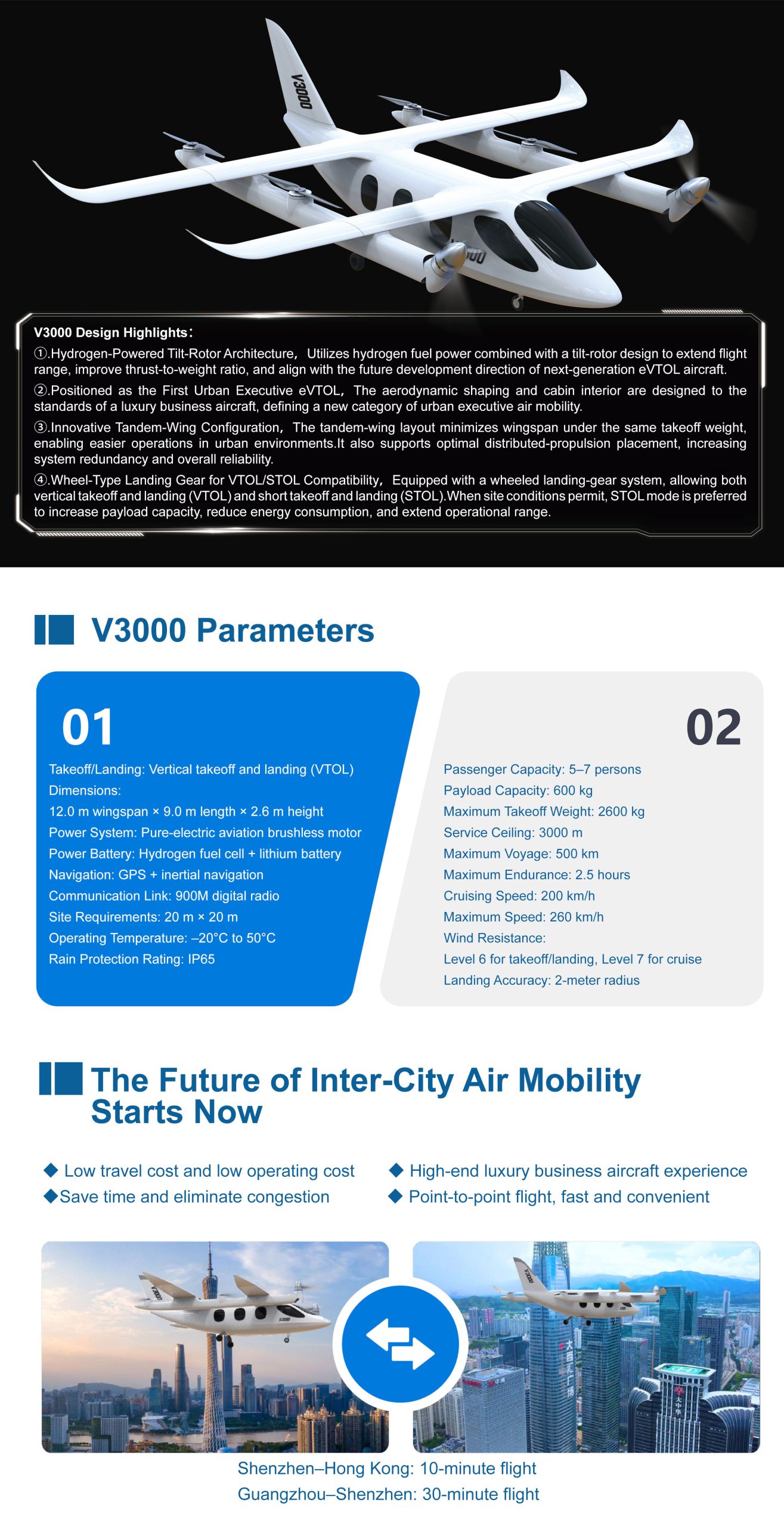 V3000 Business eVTOL effectively alleviates ground congestion and enables green travel;
